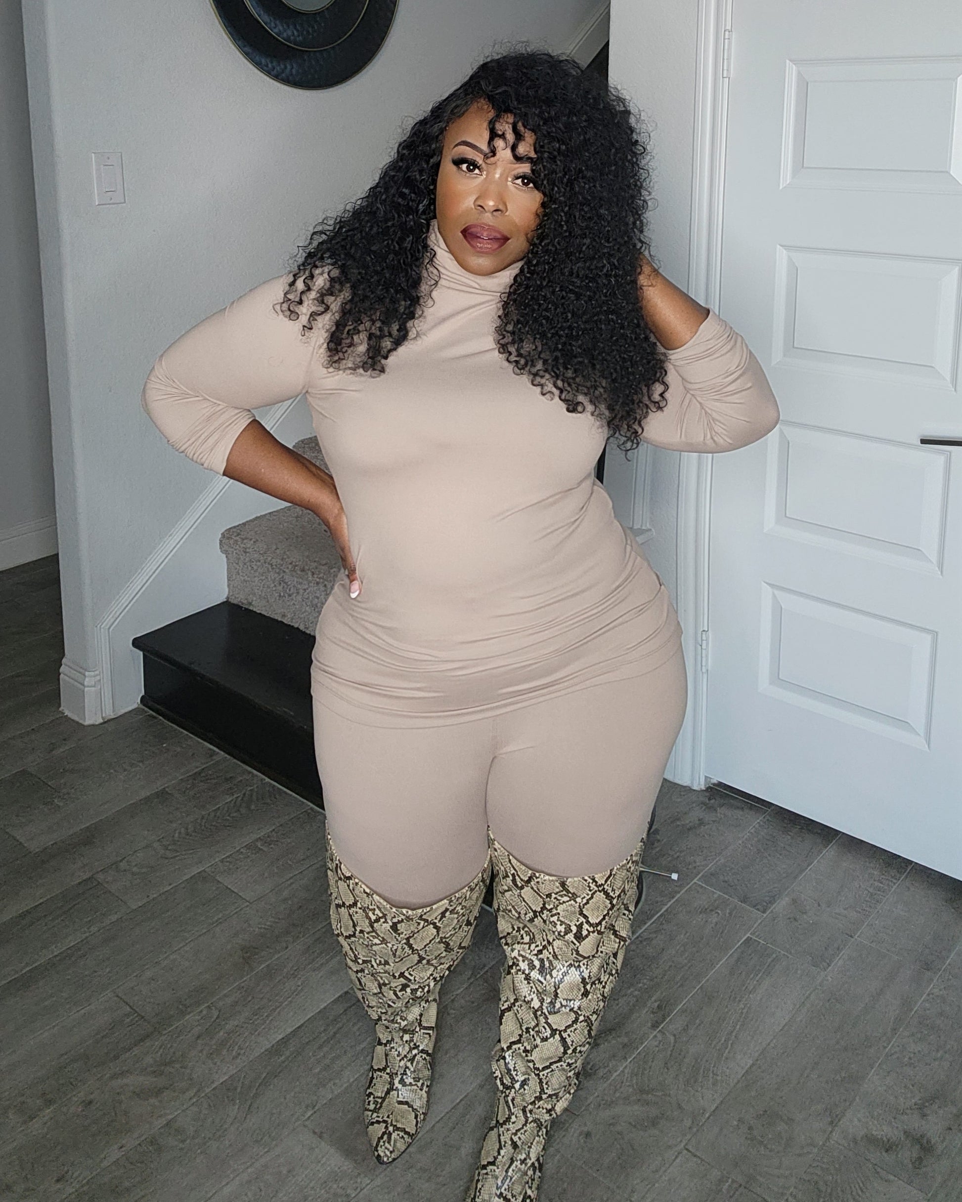 Ash Mocha, turtleneck long sleeve top with matching leggings
